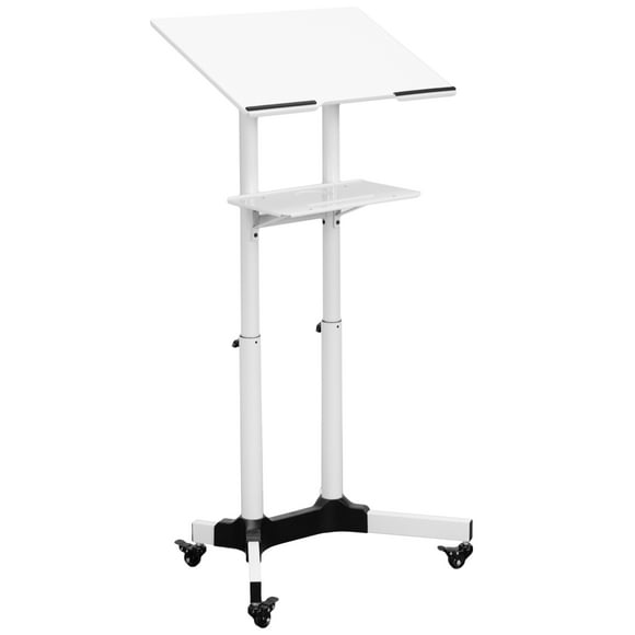 Vinsetto Mobile Printer Stand White 23.5 x 15.75 x 27 in, White, Standard, Particleboard, Adjustable Shelf Cabinet Cart, 4 Wheels (2 Lockable)