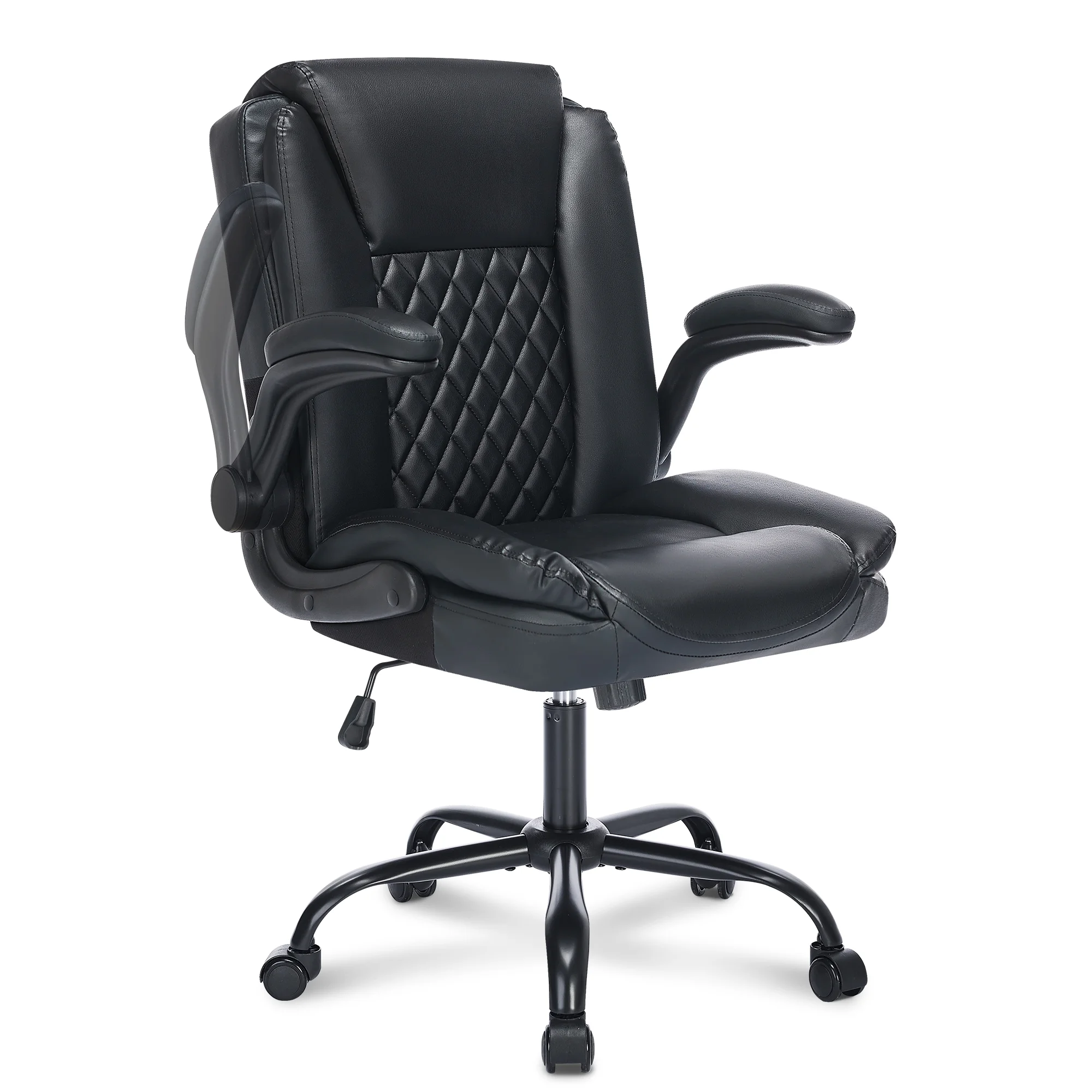 Dhole Ergonomic High-Back PU Leather Office Chair with 120° Recline & Flip-Up Arms - Home Office Desk Chair for Work, Study, Gaming, 300LBS Capacity (Black)
