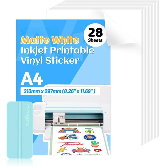 Printable Sticker Paper for Inkjet Printer Matte White Printable Sticker Paper 8.26" x 11.69" A4 Size 28 count/ for Photo, Scrapbooking, Craft Cutters