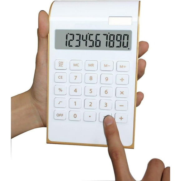 Calculator, Slim Elegant Design, Office/Home Electronics, Dual Powered Desktop Calculator, Solar Power, 10 Digits, Tilted LCD Display, Inclined Design, White,1*Calculator,White & gold $10.00