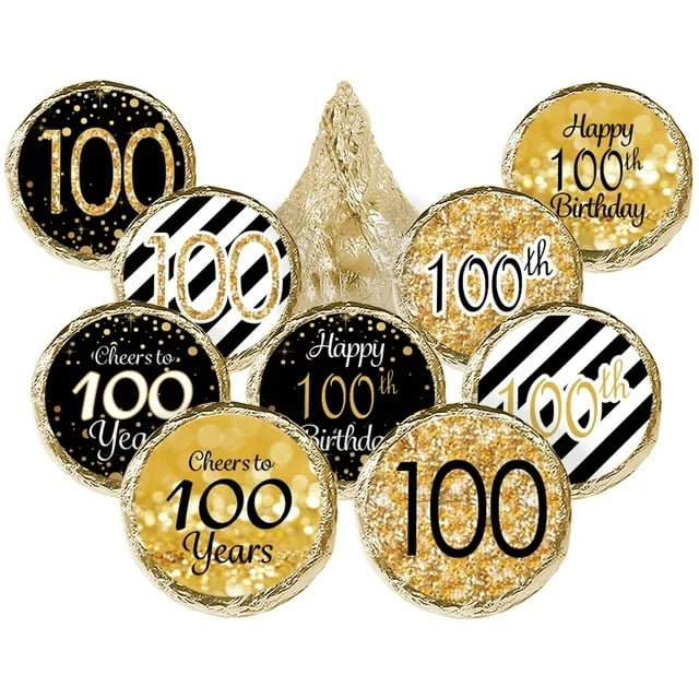 3drose, Yellow and Black Gifts and Balloons Happy 100th Birthday, 12 Greeting Cards with Envelopes
