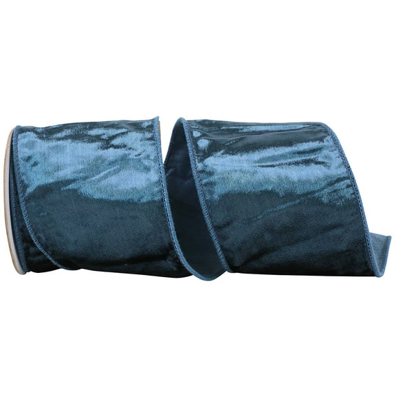 Reliant Ribbon - 92898W-053-10D, Designer Plush Velvet Elite Wire Edge Ribbon, Blue, 4 Inch, 5 Yards