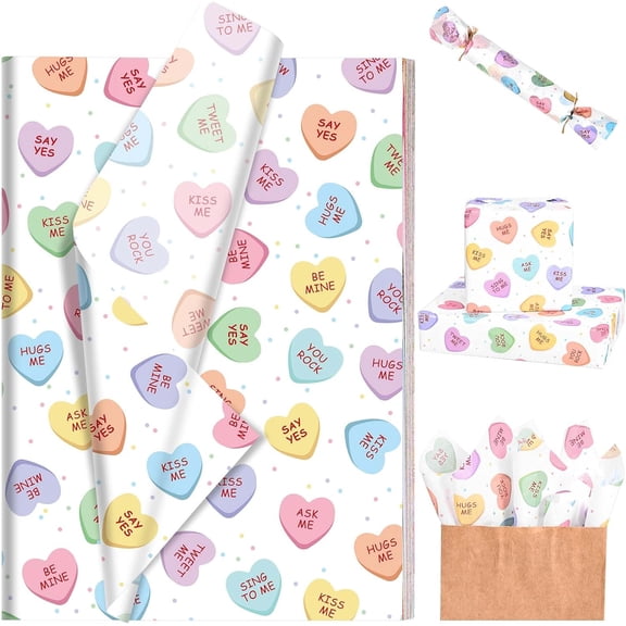 100 Sheets Conversation Heart Tissue Paper Colorful Heart Printed Tissue Paper for Gift Wrapping for Christmas Anniversary Wedding Party DIY Craft20 * 14 Inches