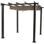 Sunjoy 11 x 11 ft. Metal Pergolas with Natural Wood Looking Finish and Tan Adjustable Canopy Shade Covered Pergolas