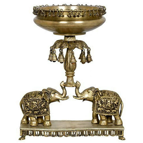 Exotic India The Royal Elephant Urli with Bells - Brass Statue $2,101.00