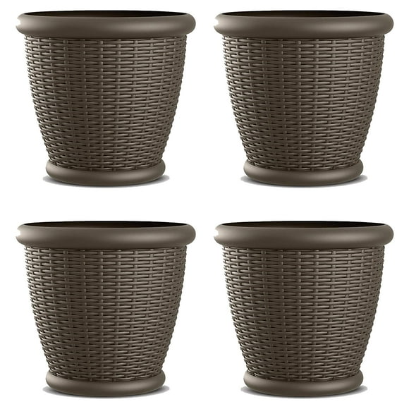 Suncast Willow 18" Diameter Decorative Wicker Patio Planter Pot, Java (4 Pack) $64.99