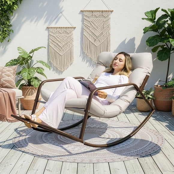 RADIATA Oversize Rocking Chair with Cushion & Footrest, Indoor Outdoor Rocking Chair Recliner, 450 lbs Capacity, Beige $129.00 Was $239.00