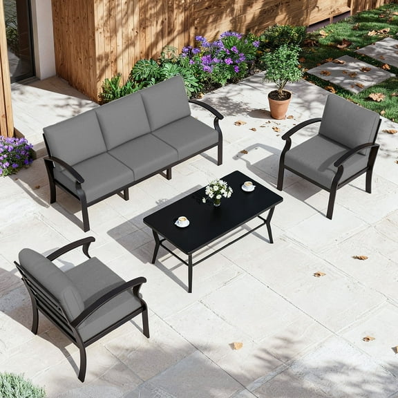 Sophia&William 5 Seat Outdoor Patio Furniture Set Modern Metal Cushioned Conversation Set with Wider Chairs & Color-blocking Coffee Table, Gray