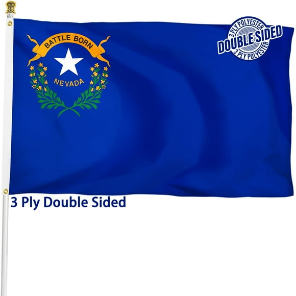 current price $39.95G128 – Nevada State Flag | 3x5 feet | Double Sided Embroidered 210D – Indoor/Outdoor, Brass Grommets, Heavy Duty Polyester, 2-ply