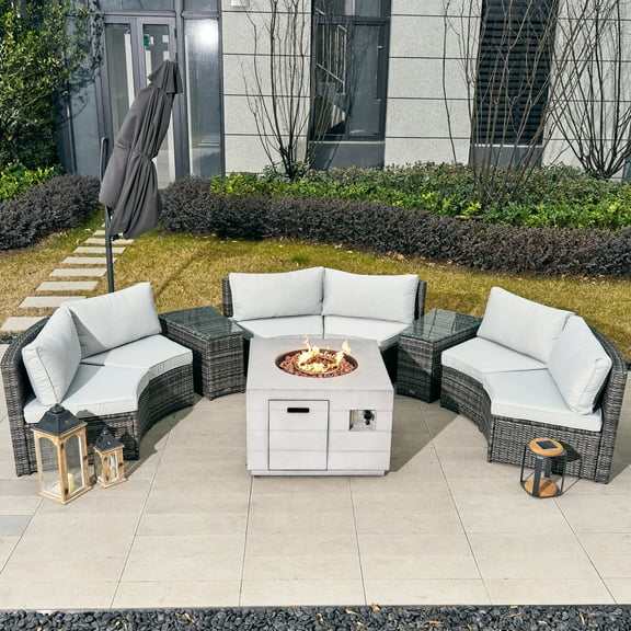 Available in additional 3 optionsDirect Wicker 9-Piece Outdoor Halfmoon Shape Patio Wicker Sectional Sofa Set with Fire Pit Table
