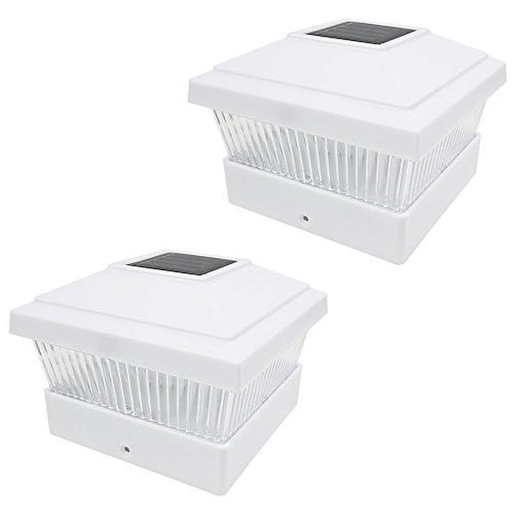 iGlow 2 Pack White Outdoor Garden 5 x 5 Solar LED Post Deck Cap Square Fence Light Landscape Lamp Lawn PVC Vinyl Wood