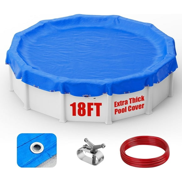 Future Way 18 FT Winter Pool Cover for Above Ground Pools, 1300D Extra Thick Winter Pool Cover with Winch and Cable, Swimming Pool Covers Superior Strength & Duability, Cold & UV Resistant, 18 Foot