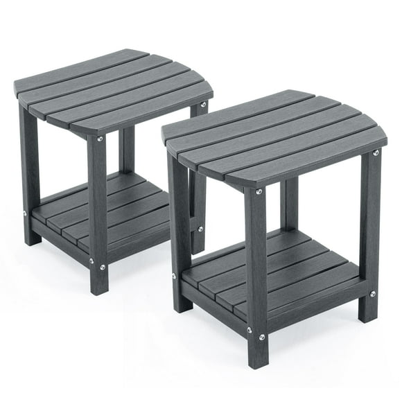 ENYLAY Adirondack Small Outdoor Side Table , Weatherproof HDPE Patio End Table with 2-Tier Storage for Firepit, Balcony, Garden, Poolside or Bathroom (Grey, Set of 2) $71.99