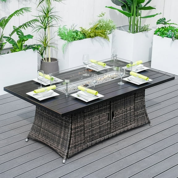 Direct Wicker Fashion 71" x 39.3" Rectangular Propane Fire Pit Table with Wind Guard and Metal Lid(Grey)) $1,399.00
