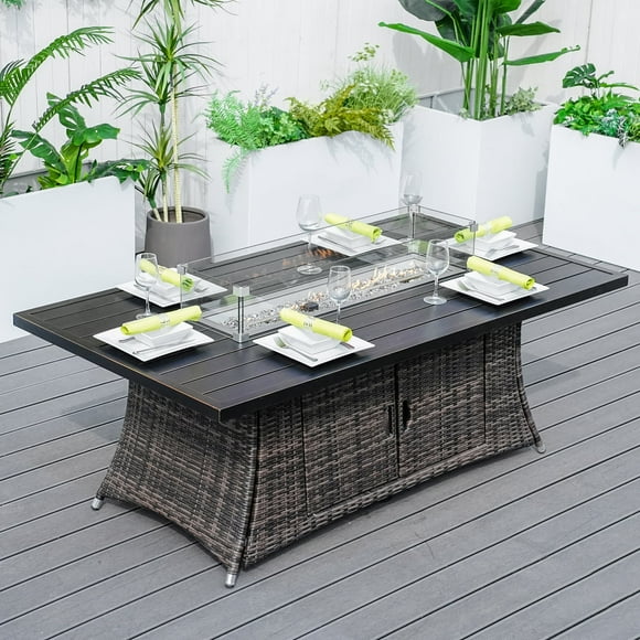 Direct Wicker Fashion 71" x 39.3" Rectangular Propane Fire Pit Table with Wind Guard and Metal Lid(Brown)) $1,399.00