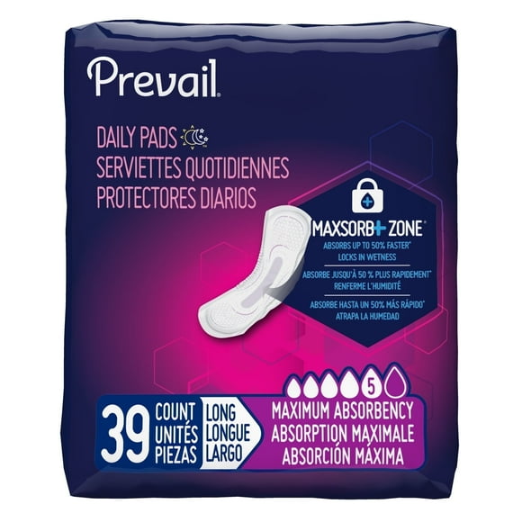 Prevail Daily Pads for Bladder Leaks, Disposable, Ultimate Absorbency, Regular, 33 Count, 4 Packs, 132 Total $48.50 Was $63.00 36.7 ¢/count