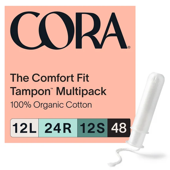 Cora Compact Applicator Tampons, 100% Organic Cotton, 12 Light/24 Regular/12 Super, 48 Count $14.94 31.1 ¢/count