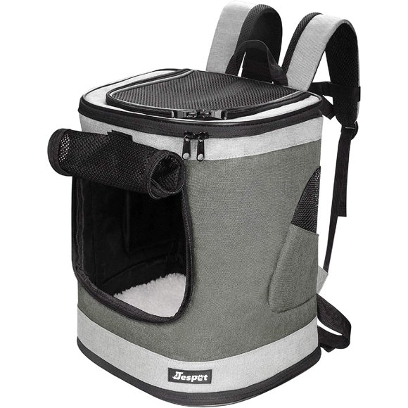 JESPET & GOOPAWS: Pet Soft Backpack Carrier - Smoke Grey - 13", Small Dogs & Cats, Portable-Traveling-Hiking-Walking, Outdoor, Mesh Window, Ventilated $39.99