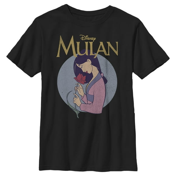 Boy's Mulan Smelling the Flower Graphic Tee Black X Small $12.99 Was $18.99