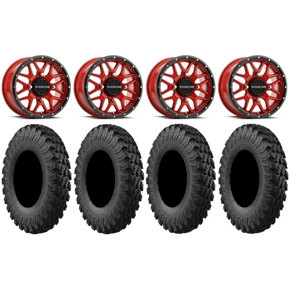 current price $1,715.96Raceline Krank 14" Red Wheels 32" XTR370 Tires Can-Am Maverick X3 / Honda Pioneer 1000 / Talon