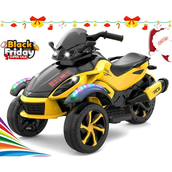 Clearance RCB 12V Kids Ride on ATV w/ One-Touch Start, 3-Wheel Stability, LED Lights, Built-in Music Player - Yellow $139.99 Was $159.99