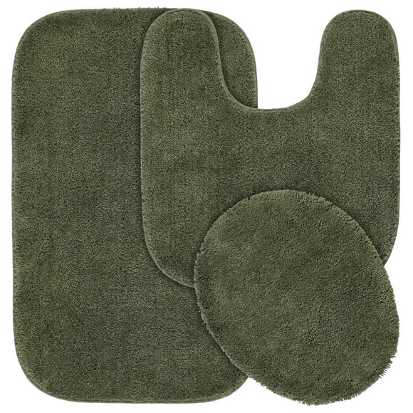 Garland Rug Traditional Washable Bath Rug Set, 3 Piece Set (21"x34" Bath Rug, Contour Rug, & Toilet Lid) Deep Fern