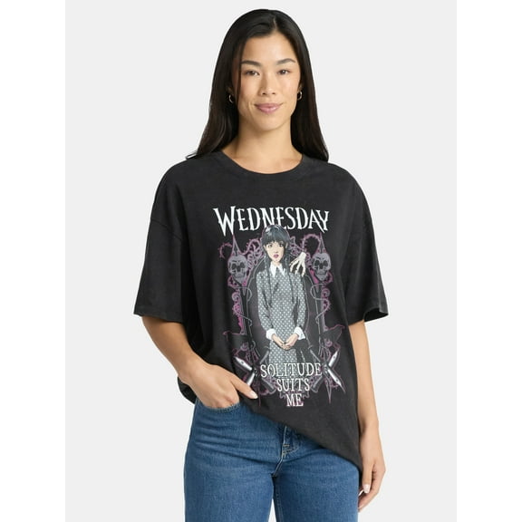 Women's Wednesday Anime Addams Graphic Tee Black Large