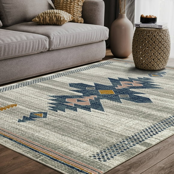 Abani Casa Collection Area Rug Mid Century Modern Bedroom Living Room Decor Floor Rug 5 x 8 Blue Grey $127.98