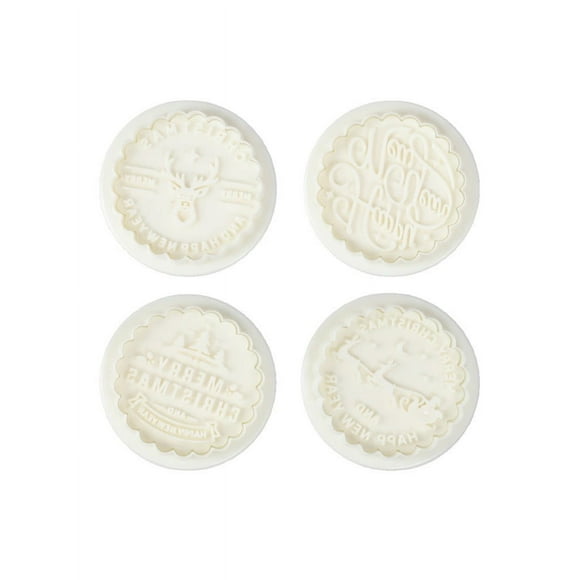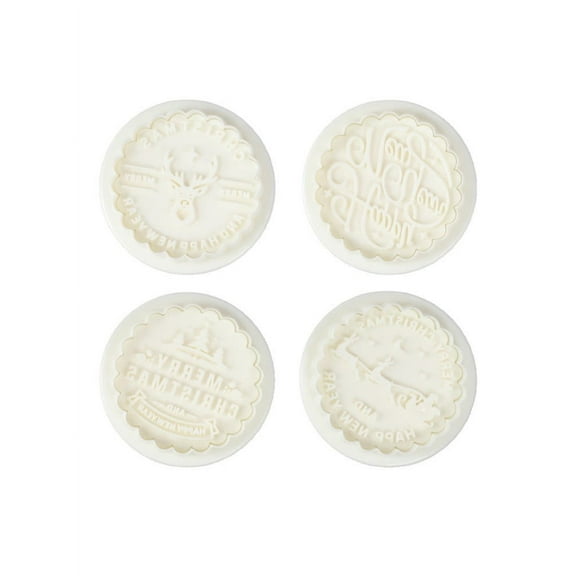 YASONIC 4pc Round Spring Press Home Christmas Cookie Cutter Set- Food-safe PP Material