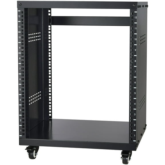 current price $89.90KFFKFF 12U Audio-Visual Rack Stand, Supports up to 500 lbs, Equipped with Secure Locking Wheels and Versatile Round & Square Mounting Holes, Featuring Unique Ventilation for 19" AV, Music & IT Gear