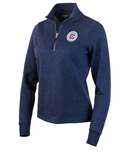 current price $84.99Men's-Cutter & Buck Heather Navy Chicago Fire Peshastin Eco Fleece Recycled Raglan Quarter-Zip Top
