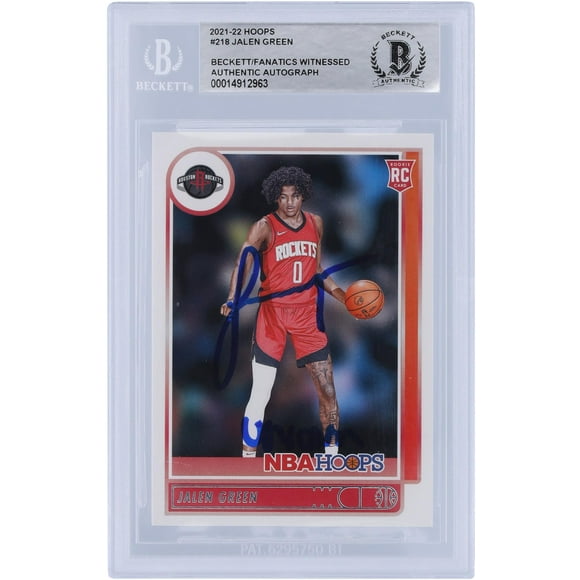 current price $187.49Jalen Green Houston Rockets Autographed 2021-22 Panini NBA Hoops #218 Beckett Fanatics Witnessed Authenticated 10 Rookie Card - Fanatics Authentic Certified