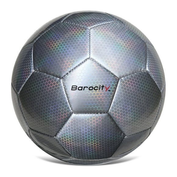 Barocity Soccer Ball - Premium Official Match Ball with Cool Reflective Rainbow Hex Pattern, Durable Adult and Kids Soccer Ball for Indoor, Outdoor, Training, Practice, Play and Games - Silver Size 4 $19.99