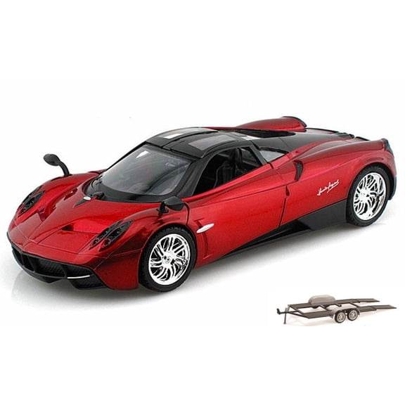 Diecast Car & Trailer Package - Pagani Huayra, Red - Motormax 79312 - 1/24 Scale Diecast Model Car w/Trailer