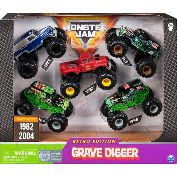 Monster Jam Grave Digger Monster Truck 5pc Value Pack: 1:64 Scale Retro Die-Cast Gift Set with Iconic Models (1982-2005) Chrome Rims and BKT Tires - Great Gift for Kids & Fans! $59.95 $29.10/ea