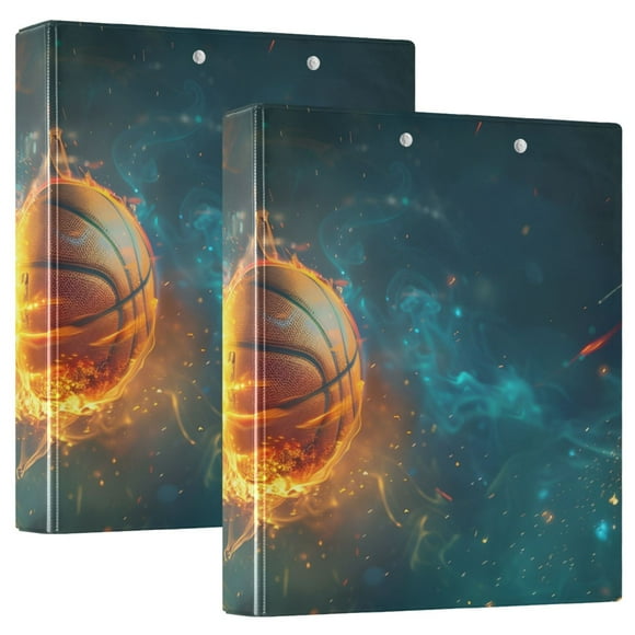Flaming Basketball Flight Round Ring Binder 3 Rings 1.5" Capacity File Storage for A4 Size Paper for Office Classroom Student Recipe 1 Pack