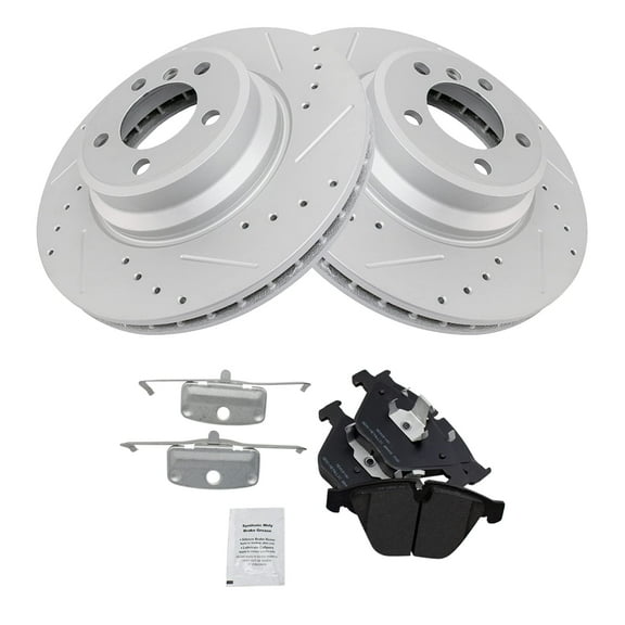 TRQ Front Performance Brake Pad & Rotor Kit Brake Pads Brake Rotors Set Semi-Metallic Premium G-Coated Fits Select 2002-2005 BMW 745i 745Li 2006-2008 750i 750Li 2004-2006 760i 2003-2008 760Li $176.95