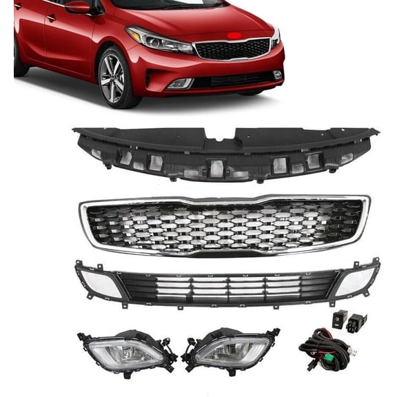 current price $132.60Front Bumper Grille Fog Light Radiator Cover Kit Compatible with Kia Forte5 Hatchback EX LX 2017 2018 Upper Lower Grille Assembly Chrome 5 PCS 86350-A7810 86350A7830