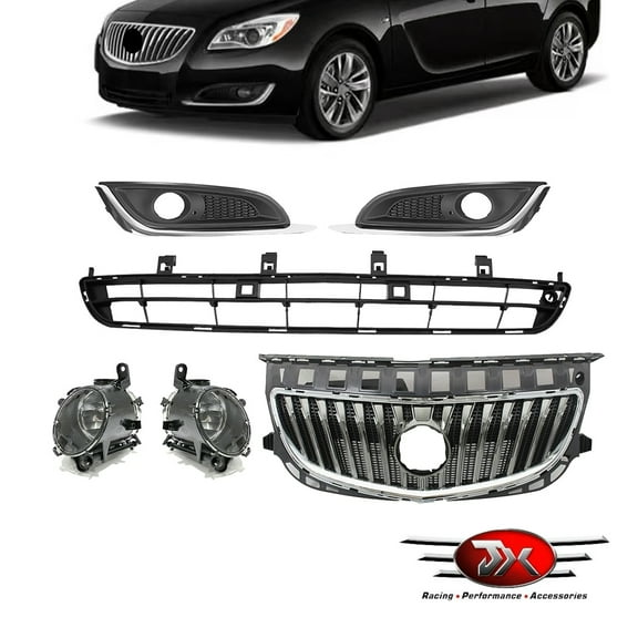 current price $177.99JX RACING Front Upper/Lower Grille Fog Lamps/Bezels Set Compatible With Buick Regal 2014-2017 6pcs