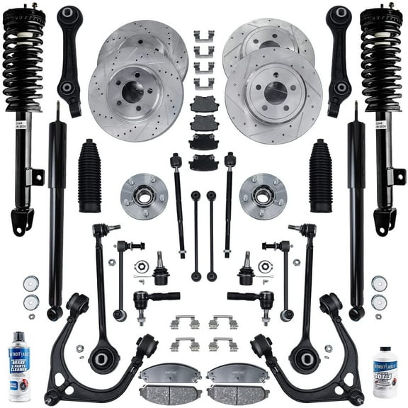 current price $742.74Detroit Axle - 34pc Brake Suspension Kit Brake Kit for Chrysler 300 Dodge Charger Front Control Arms Sway Bars Struts Replacement Rear Brake Rotors Brakes Pads Wheel Hubs Shock Absorbers