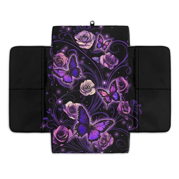 Renewold Butterfly Rose Violet Car Center Console Armrest Cover Soft Armrest Cover Lid Non-slip Middle Console Cover with Side Storage Pocket for Car Seat Organizer Universal Fit