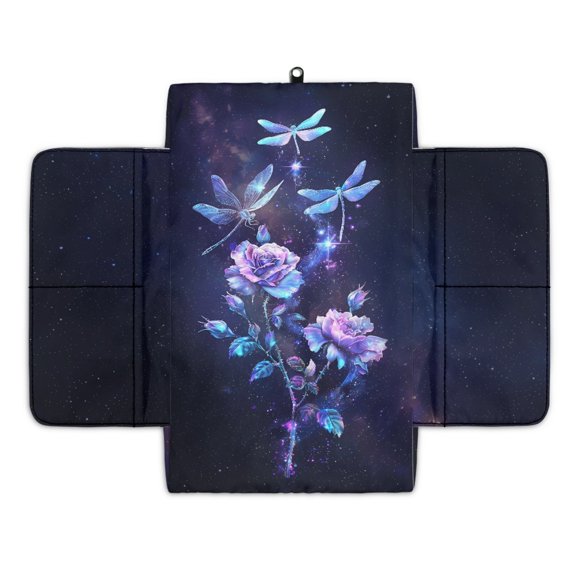 Renewold Dragonfly Rose Galaxy Auto Center Console Cover Soft Armrest Box Pad Protector Middle Console Cover with Pockets Storage Bag Hand Rest Pillow Car Interior Decor Accessories