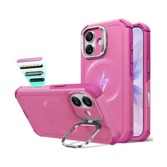 1997 for iPhone 17 Case with Stash Stand, 7X Military-Grade Drop Protection with Camera Control, Shock-Absorbing Phone Rugged Cover, Compatible with MagSafe Accessories, Cyber Series, Pink $29.99