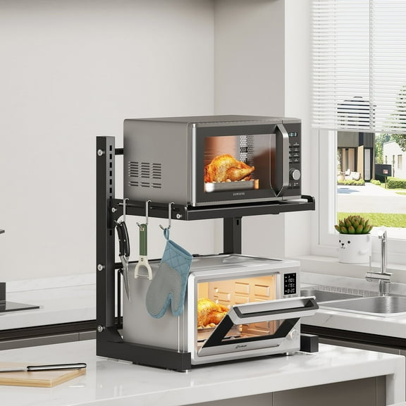 ABCOOL Retractable Adjustable 2 Axial Snap-in Kitchen Baker Microwave Oven Rack, Expandable and Height Adjustable Carbon Steel Shelf Counter Countertop with 3 Clip Hooks, Electric Oven Holder From $49.99