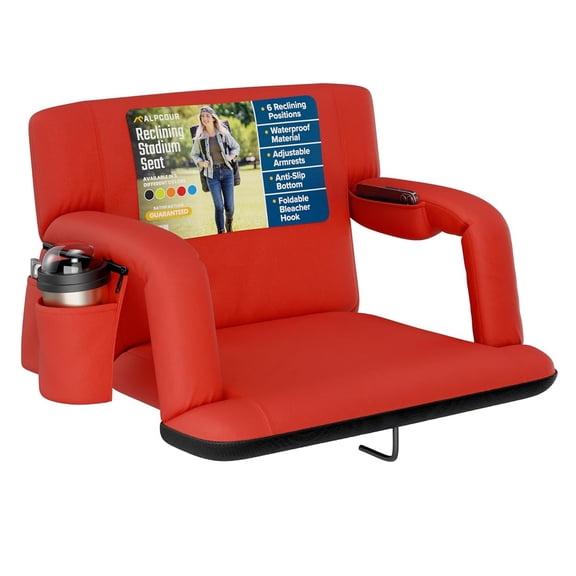 Alpcour Reclining Stadium Seat - Waterproof, 6-Position Comfort for Outdoor Use - Red From $49.99