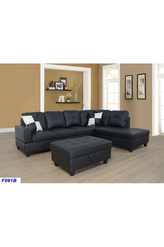Sectional Sofa Couch,L-Shaped Modern Style with Storage Ottoman 3-Piece for Living Room | Faux Leather (Right Hand Facing, Black)Other options to consider(3)
