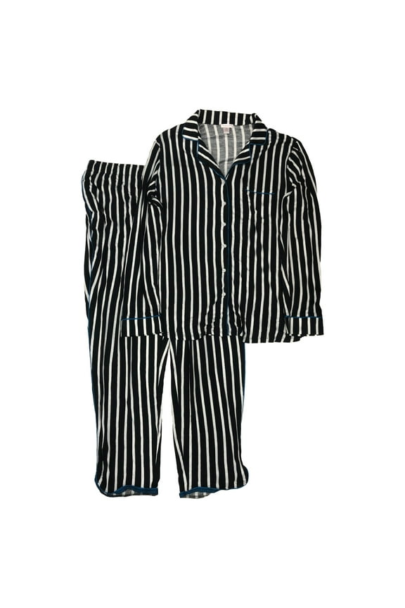 Womens Lightweight Black Squad Pajamas T-Shirt & Shorts Set XXWomens Black Stripe Pajamas Knit Button Front Sleep Set X-Large $42.99