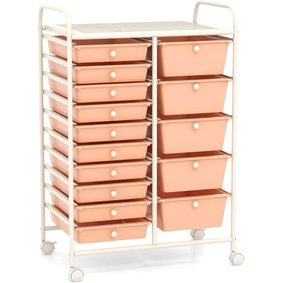 ARLIME 15-Drawer Storage Cart, 15 Drawer Trolley, Rolling Organizer Cart, Scrapbook Paper Organizer, Suitable for Office and School, Rolling Office Storage Tools (Peach)