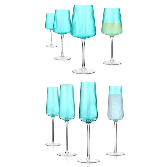 Artland Soho Optic 8.5 oz Champagne Flute & 14 oz Goblet (8-Piece Set) - Stemmed Glasses for Weddings, Parties - Versatile Use Cocktails, Prosecco, Wine Ideal Gift Idea, Dishwasher Safe (Turquoise) $54.99