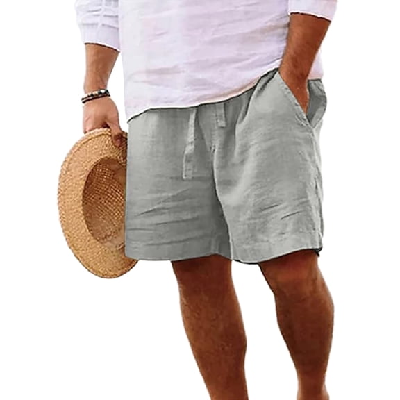 Mens Workout Shorts Cotton Linen with Pockets Elastic Waist Casual Solid Straight Wide Leg Lightweight Gym Bermuda Short